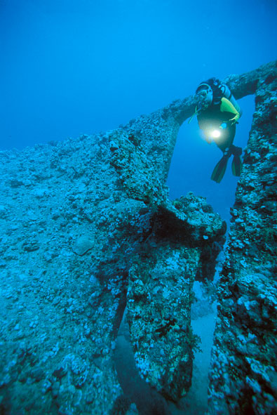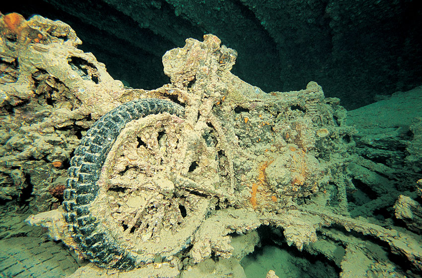 Thistlegorm: Gün batımına yakın bir saatte ulaştığımız geminin üzeri dalış tekneleri ile dolu. Akıntı çok kuvvetli olduğundan kılavuz ipine tutunarak inmemiz gerekiyor. Bunca ziyaretçinin ardından dip oldukça bulanık olduğundan fotoğraf çekmeden sadece batığı gezmeye karar veriyorum. Ertesi sabah batığa ilk dalanlardan olduğumuzdan durum bir gün öncekinden çok farklı görünüyor. Işık daha fazla ve vizibilite çok çok daha iyi. Dalışın henüz başında geminin kıç tarafında yarasabalığı sürüsü ile karşılaşmak iyi bir dalışın habercisi oluyor. Yarasabalıklarının görüntüsünü aldıktan sonra ambarlara yöneliyorum. Daha önce çok az dalgıç uğradığı için vizibilite çok iyi. Savaş gemisinin yükü olan, jiple, trenler, motosikletler, kamyonlar fotoğrafçılara için çok güzel görüntüler sunuyor. Dünkü kadar kuvvetli olan akıntı gemini içinde hiç hissedilmediği için burada fotoğraf çekmek çok daha rahat. Gezinin bu son batık dalışından sonra Ras Muhamed’e doğru ilerliyoruz.